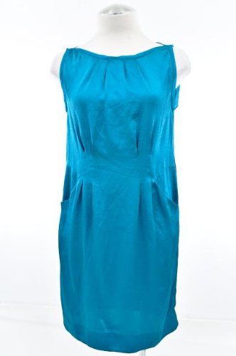 A Sexy Diane Von Furstenberg indian blue sleeveless textured silken sheath dress. It is pleated on its bateau neckline and waist, slash pockets on the front, and lining on the neckline and hem of sleeves. Classic entrance to any occasion you'll attend!
